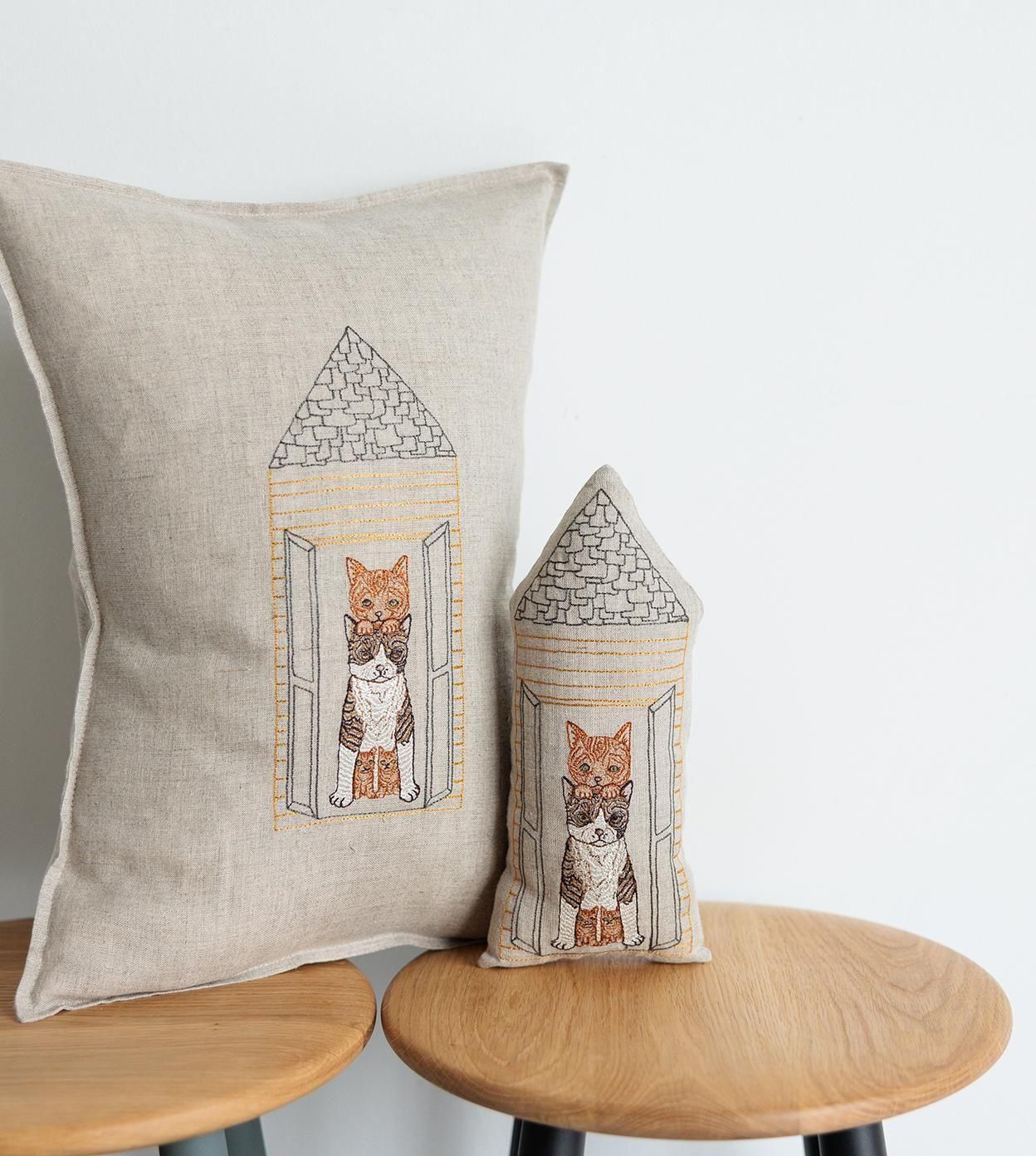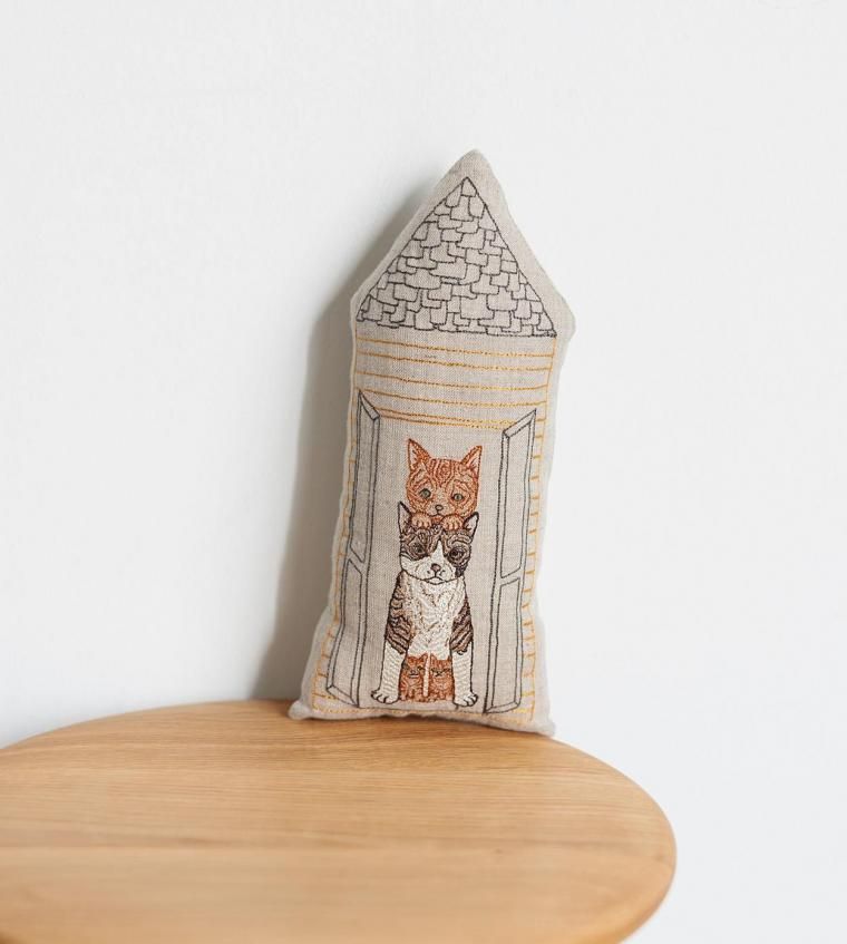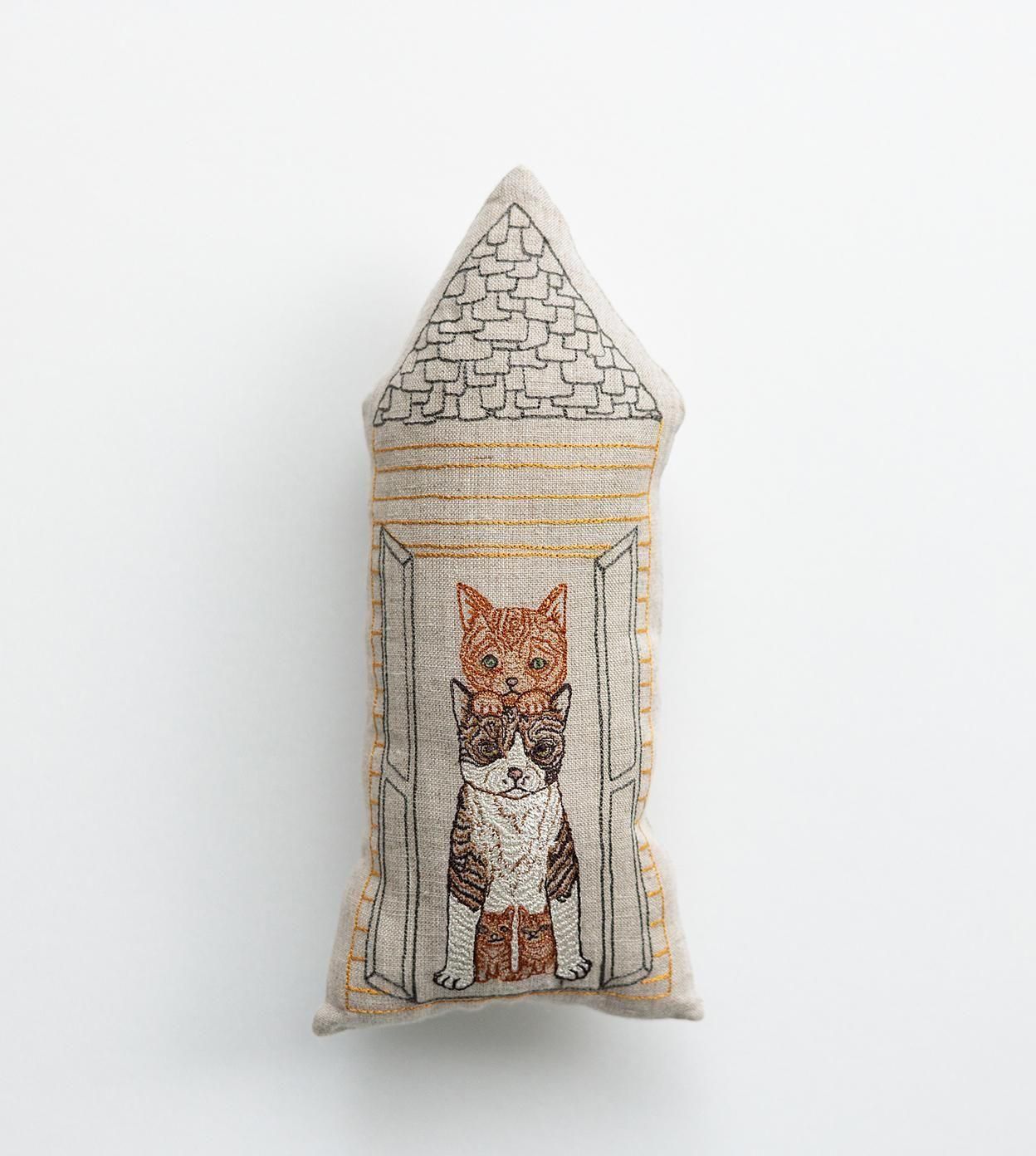 CAT HOUSE そのまんまの形で作ったミニクッション。この小ささ、アクセントになってとても素敵です。